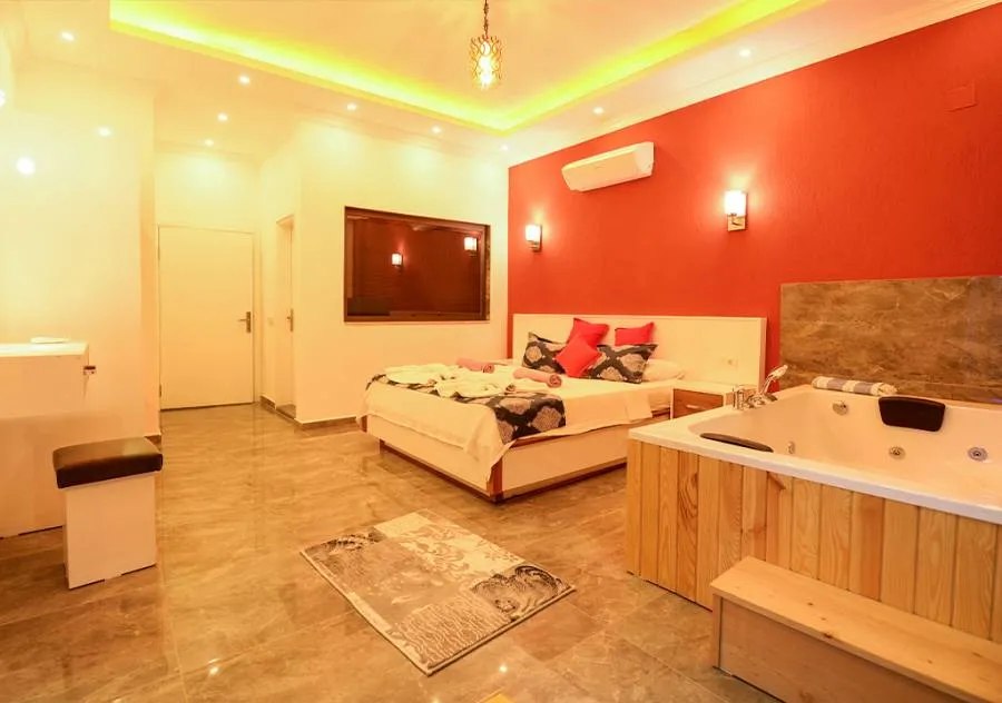 Wardrobe, Jacuzzi, Bathroom and toilet.