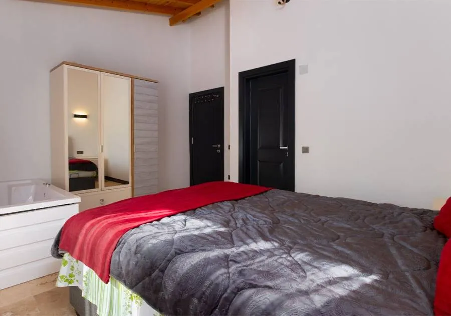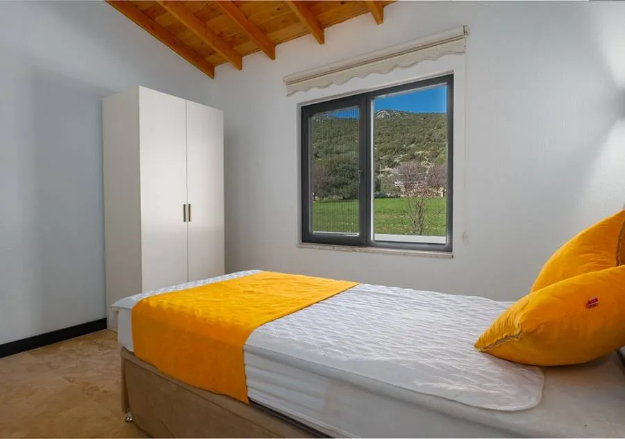 Villa , located in the village of Sarıbelen in Kalkan, is a conservative villa surrounded by greenery with 2 bedrooms and a pool area that cannot be seen from the outside.