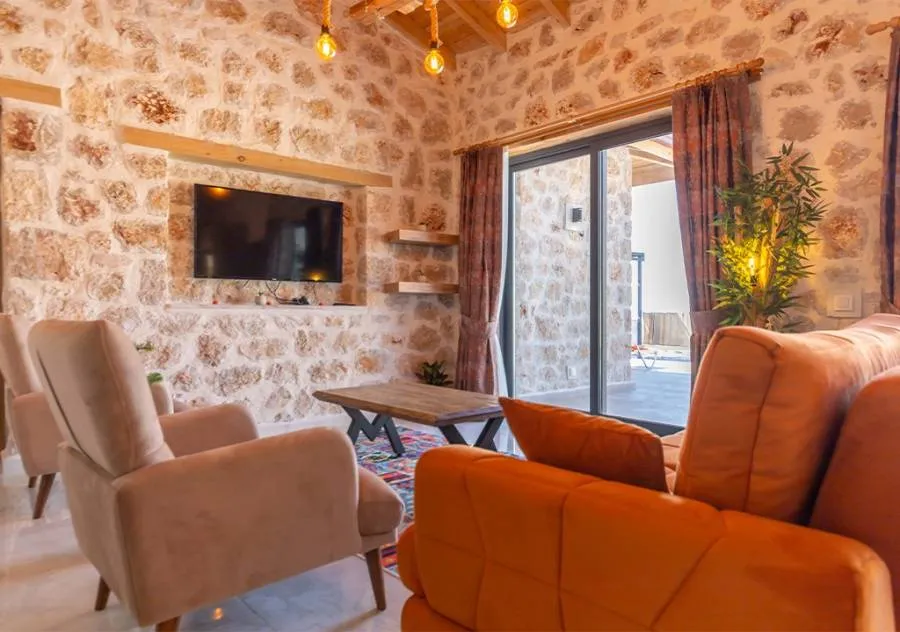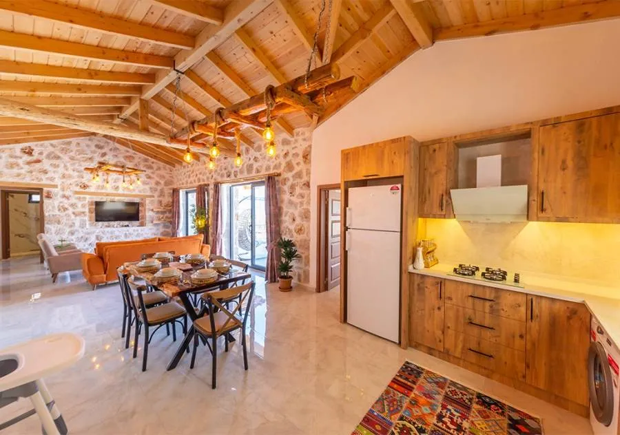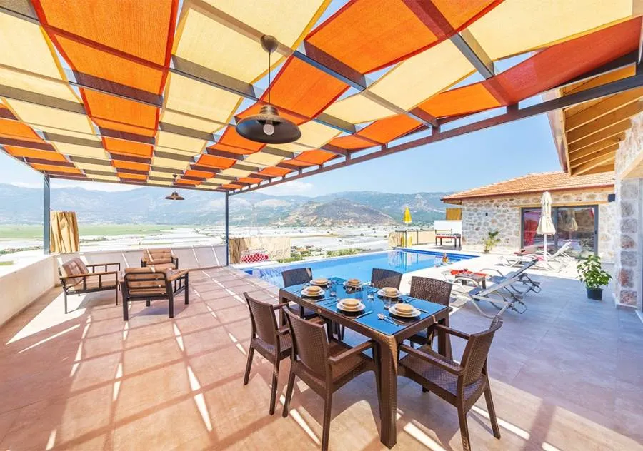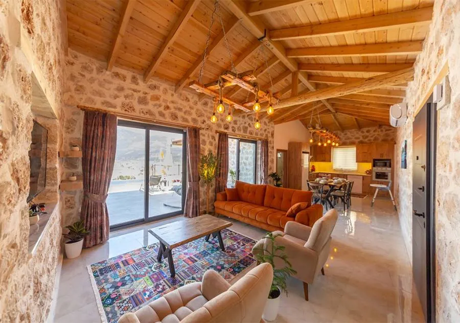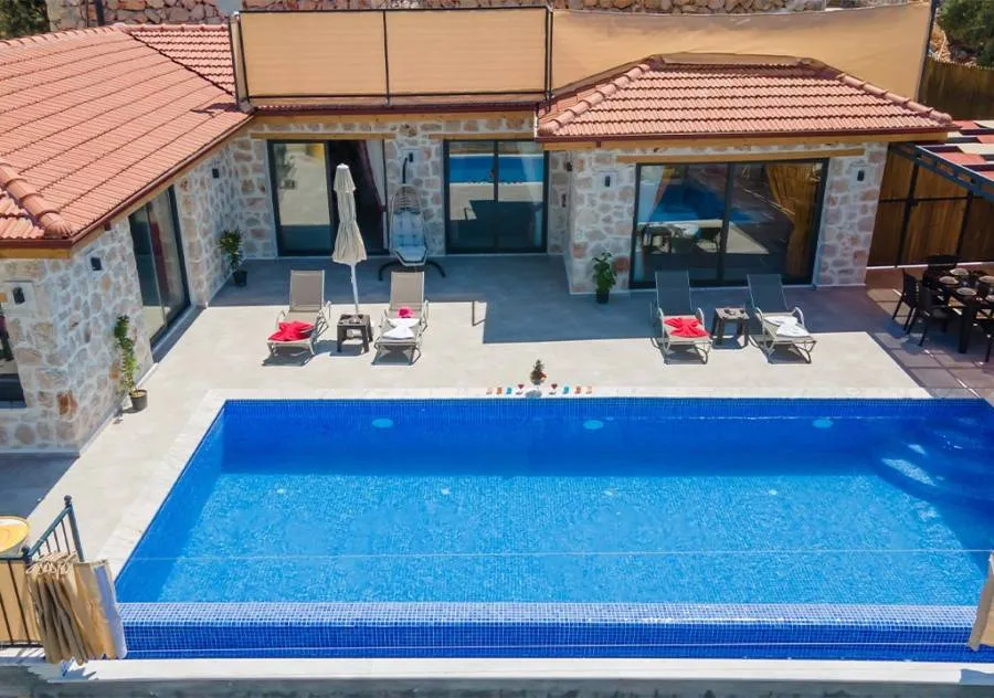 The Villa is located in the Yeşilköy area of Kalkan, promises a peaceful holiday away from the hustle and bustle of the city.